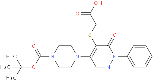 | Product Name | 1-Piperazinecarboxylic acid, 4-[5-[(carboxymethyl)thio]-1,6-dihydro-6-oxo-1-phenyl-4-pyridazinyl]-, 1-(1,1-dimethylethyl) ester |